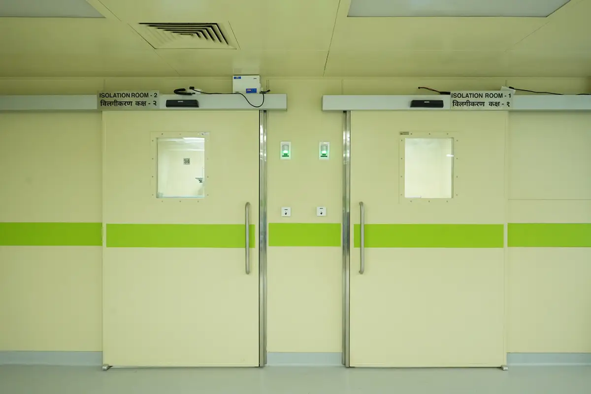 Leaf door specifically designed for functionality, hygiene, and safety. These are typically single-leaf or double-leaf, meaning they can either have one panel (leaf) or two that open and close.