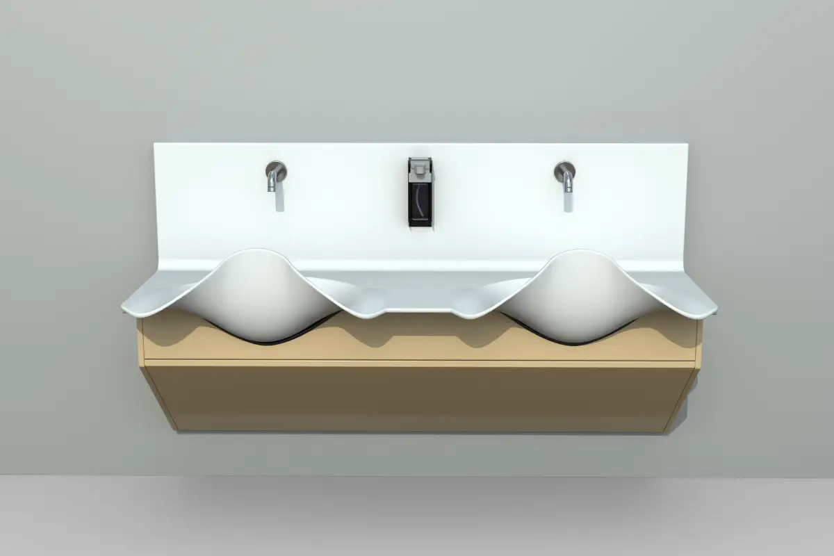 The surgical sink system shall contain 2 sinks that shall be placed directly against the finished wall with simple connection of the piping. There shall be simple wall wrap.
